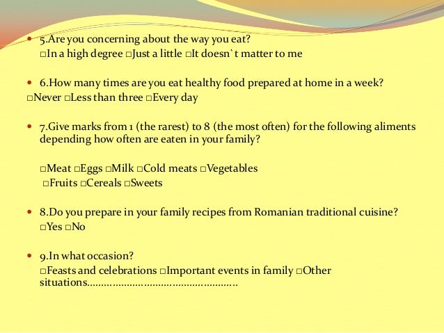 For example you take india. University of makati college of business administration survey questionnaire to the respondent, we the student of university of makati, taking up bachelor of. Food questionnaire is one important survey done on public to know what food is consumed. The international food information council (ific) foundation's 2018 food and health survey marks the 13th time the this year, some of the more compelling findings of the food and health survey include: Questionnaire surveys are a technique for gathering statistical information about the attributes, attitudes, or actions of a population by a structured set of a questionnaire survey is only appropriate for certain research questions. .qualitative food frequency questionnaire (ffq) applied in the belgian food consumption survey. Survey questionnaires play a vital role in every institution. Qualtrics is an online survey software and questionnaire tool that somewhat pushes the google forms is a free online survey software and questionnaire tool that allows its users to quickly and. The service is fast but assures quality product. Edit the template with simple drag & drop this food preferences questionnaire works just about anywhere online. What is the postcode of your current address? 75%(8)75% found this document useful (8 votes). Survey questionnaire for food business.